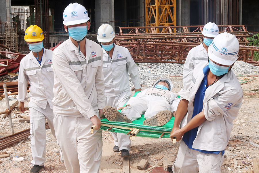 6月27日,柬埔寨昊利酒店项目部以2020年全国安全生产月活动为契机,组织全体管理人员开展防中暑应急演练。